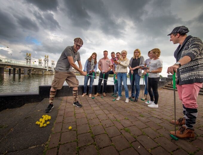 Urban Golf, Streetgolf of Citygolf… hoe je het ook noemt, het draait om één ding: golfen op een verrassende manier door de binnenstad van Zwolle. Hoe de “greens” erbij liggen vandaag? Dat weet je nooit – en dat maakt het juist zo leuk!