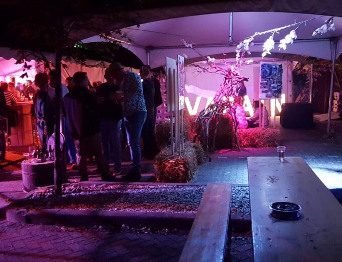 We bedachten een infrastructuur die voor alle festiviteiten geschikt was, met een uitbreiding voor het personeelsfeest. Met samenwerkingspartners DEA-Events en Slump Catering gaven we handvatten aan een concept dat we ‘Vadain Het Festival’ noemden, waarbij we de volledige opzet in festivalstijl maakten. De genodigden kregen festivalbandjes, er was een bijzondere entree, festival eten en natuurlijk een line-up met onder andere bekende artiesten. In samenwerking met de communicatie afdeling van Vadain werd de volledige aankleding verzorgt waardoor het geheel voelde alsof je op Lowlands Light rondliep. Tijdens de opbouw hadden we te maken met noodweer, maar tijdens de uitvoer was het weer fantastisch en dat hielp de feestvreugde natuurlijk naar een fantastisch hoogtepunt.